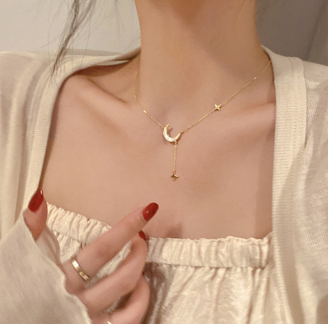 可愛い星をイメージして、美しさを象徴する月モチーフが胸元に華やかさを添える