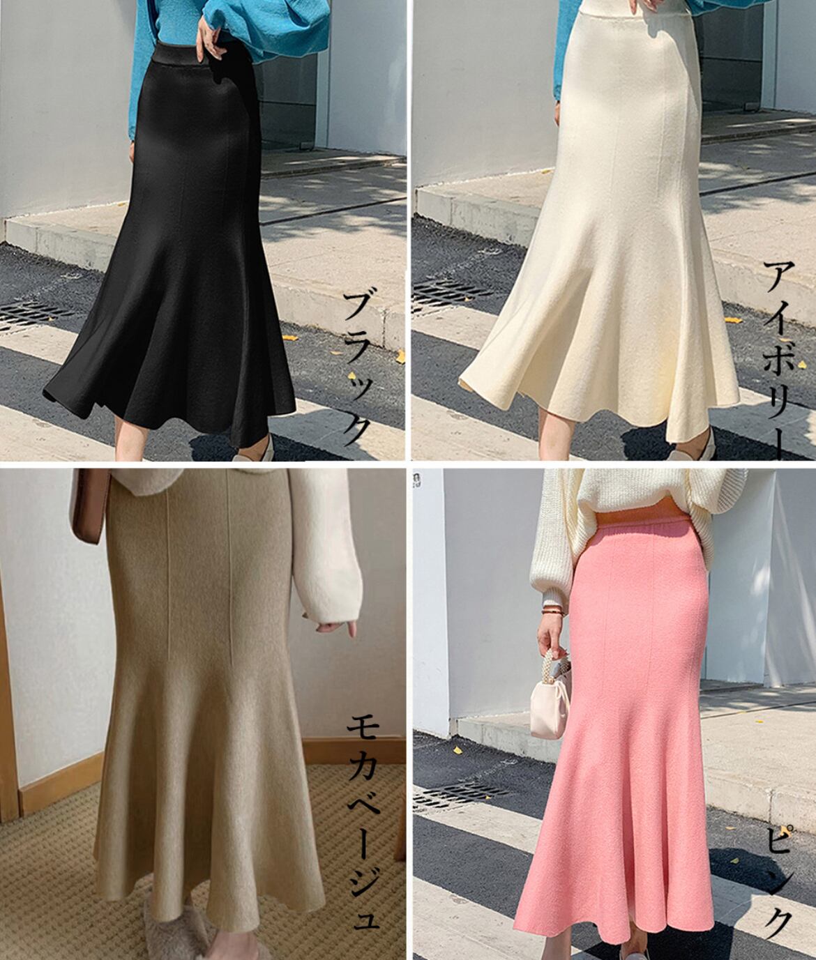 360度動きのある綺麗なシルエットを演出、歩く度に華やかなラインを描く韓国DESIGNの新作ニット生地マーメイドスカート