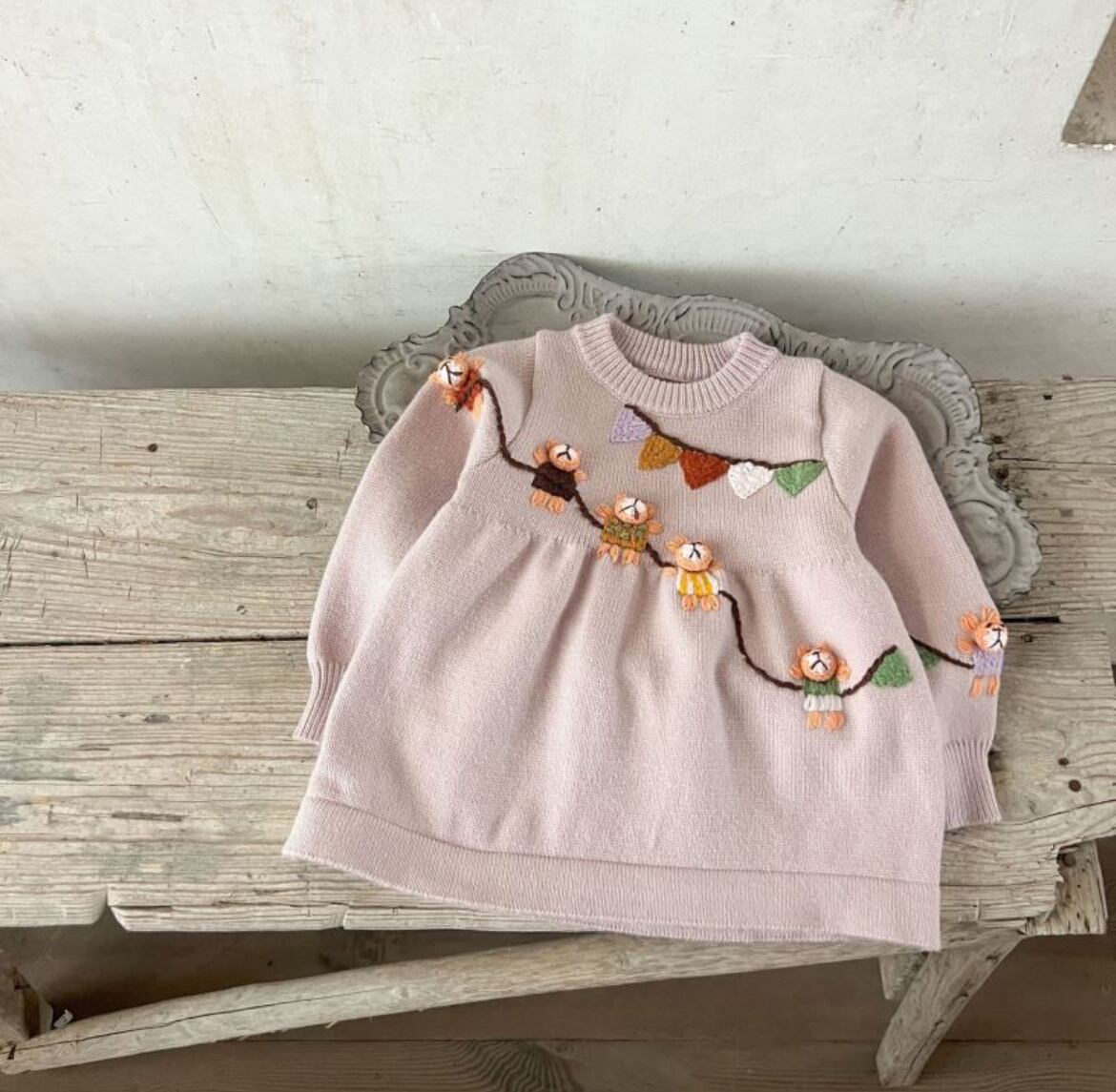 新作 ★韓国風子供服★ワンピース★ニット★長袖★キッズ★73cm~110cm 4色!このかわいらしいキッズワンピースは、柔らかいニット素材を使用し、快適な着用感とおしゃれなデザインが特徴です。普段使いから特別なお出かけまで幅広く活躍します。シンプルでありながらも子どもらしさを引き立ててくれる一着です!