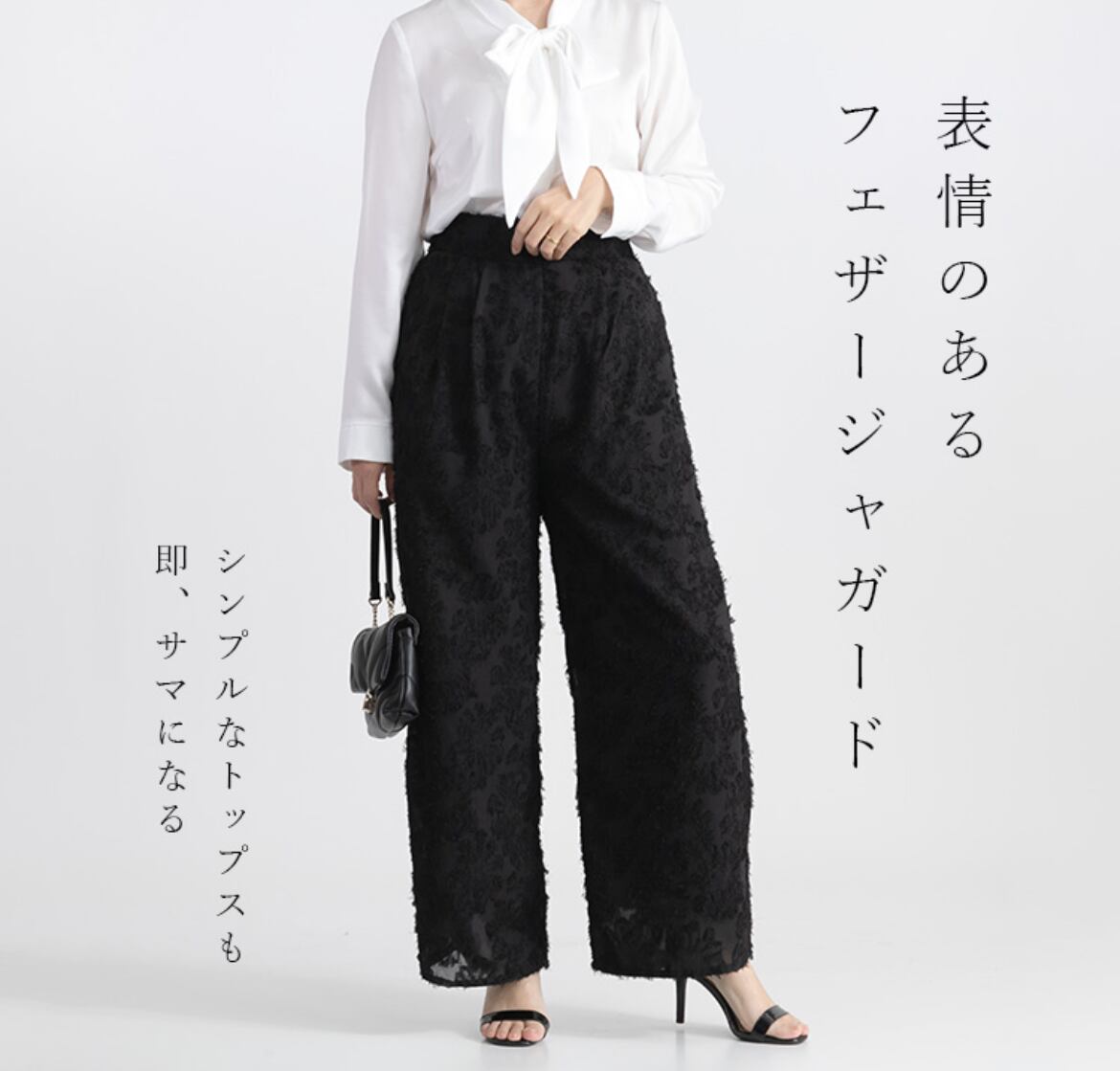 このフリンジジャカードパンツは、日常使いや特別なお出かけに最適なアイテムで、カジュアルでありながらも上品さを兼ね備えています。ぜひこのフレアパンツを取り入れて、あなたの秋冬のコーディネートをアップデートしてみてはいかがでしょうか?