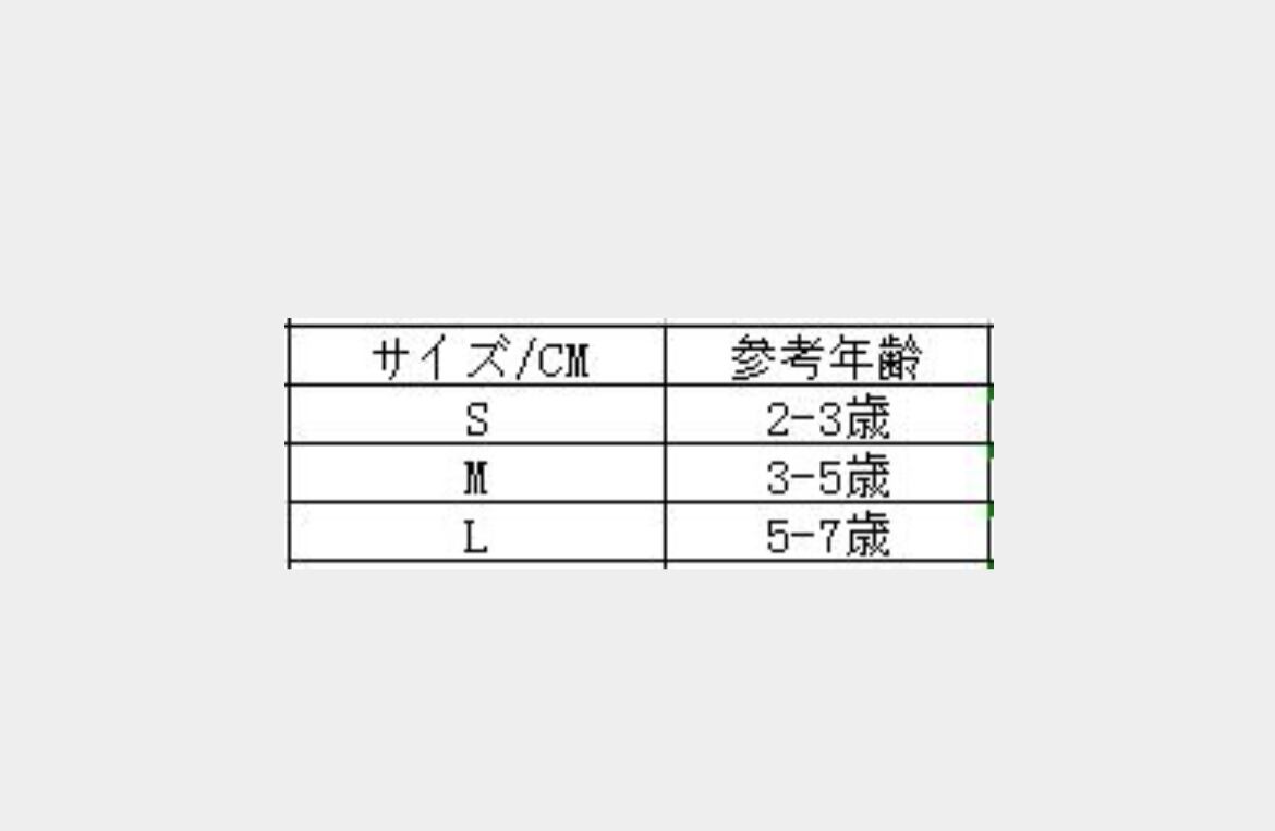 ・サイズはSからLまであり、お子様の成長に合わせてお選びいただけます。