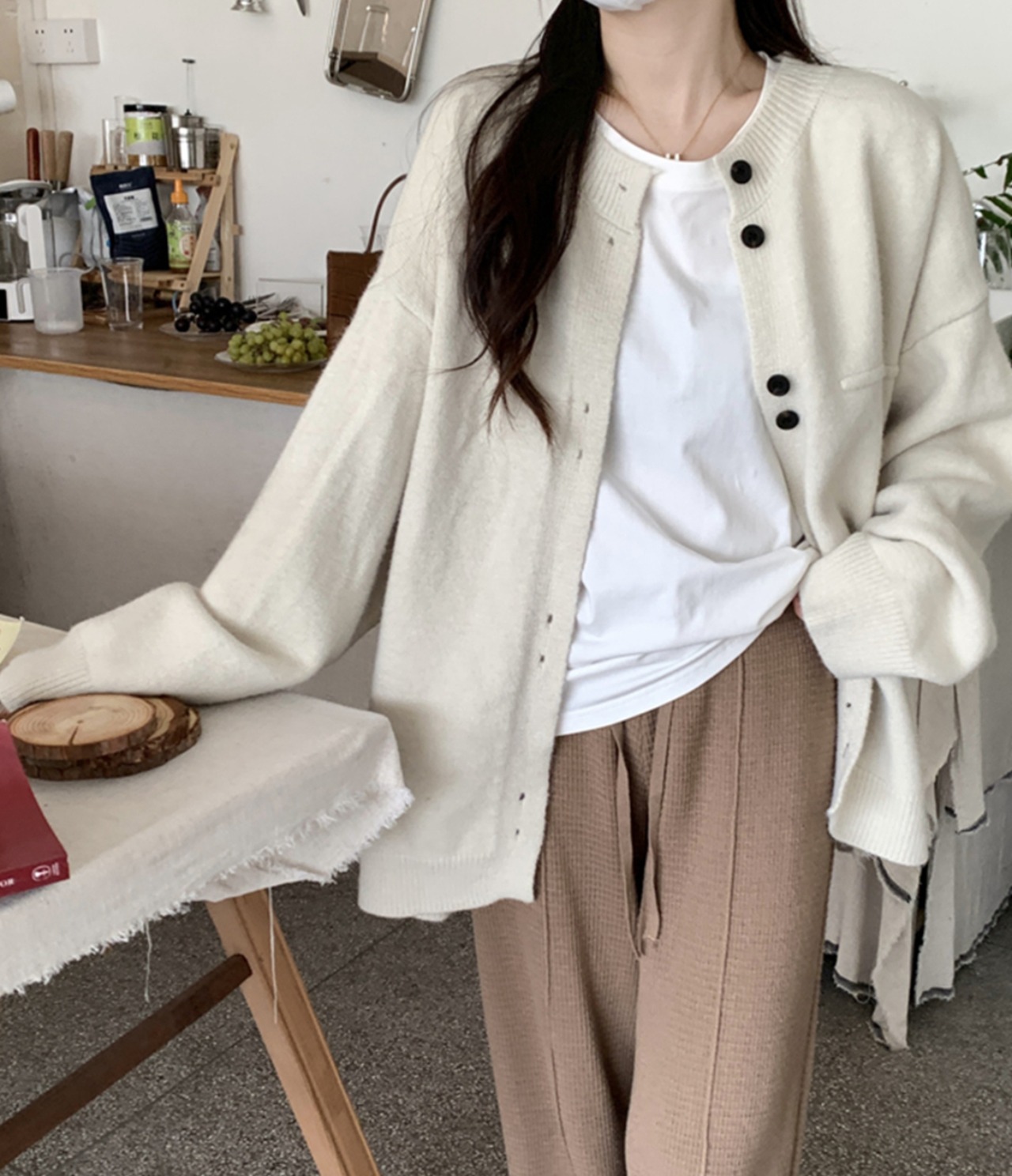 柔らかく軽やかなニット素材を使用したこのカーディガンは、心地よい着用感で、春の暖かい日差しの下でもサラッと羽織れる必見アイテムです。