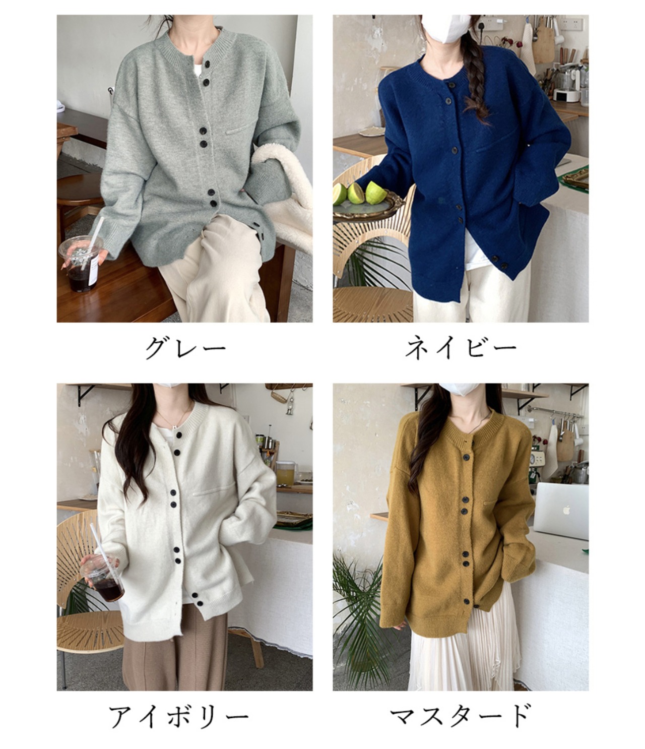 カラー:アイボリー/グレー/ネイビー/マスタード
