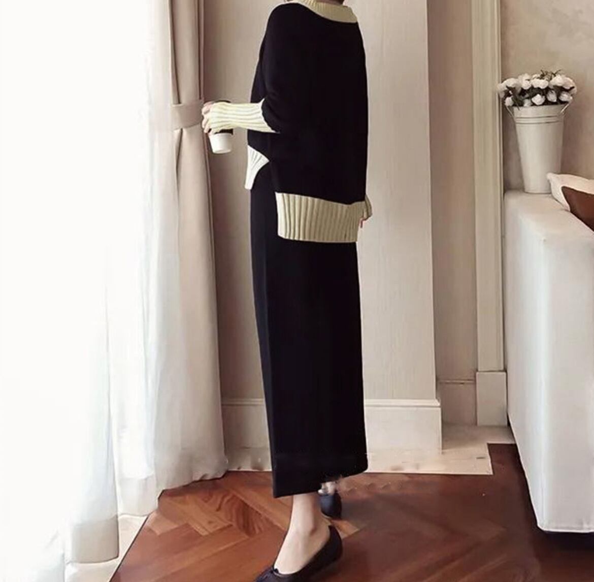 柔らかなニット素材を使用したこのバイカラーニットセットアップは、心地よい着心地を実現しつつ、スタイリッシュな印象を与え、秋のファッションを格上げします。
