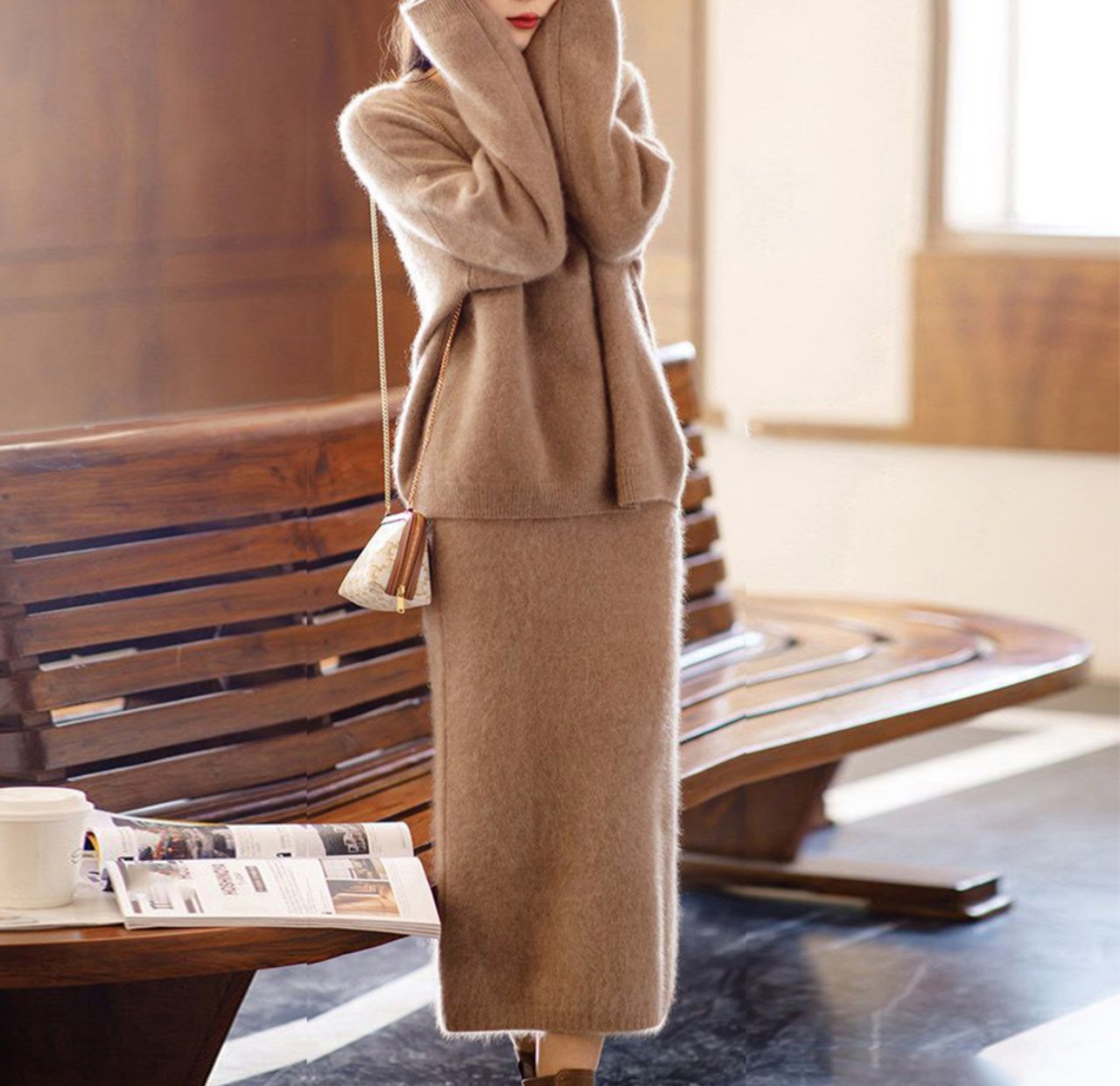 柔らかなニット素材を使用したこのニットセットアップは、心地よい着心地を実現しつつ、上品で洗練された印象を与え、秋のファッションをより一層アップグレードします。
